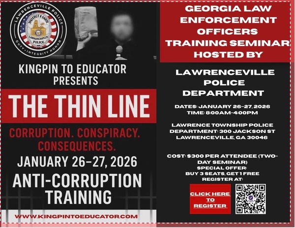Thin Line is a powerful two-day deterrent-based training unlike any other course offered in law enforcement education. Rather than teaching tactics or procedures, this seminar delivers a real-world look inside corruption, conspiracy, and consequence, told by those who have lived it on both sides.